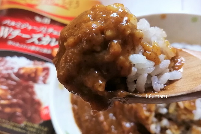 同じシリーズの【120時間熟成デミグラスの牛ほぐし肉カレー】がおいしかったので期待してたんですけど、チーズもおいしかった!