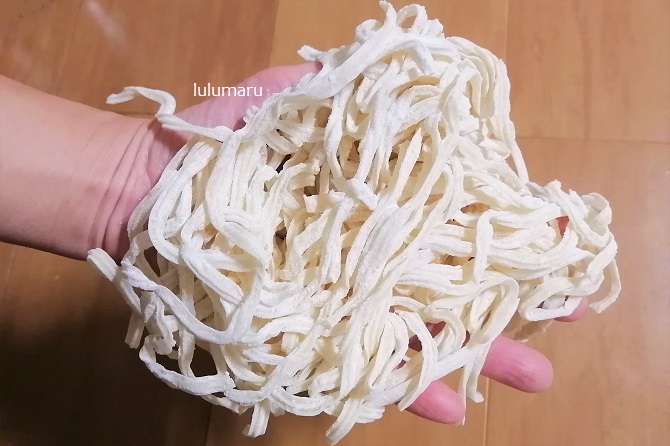 今まで食べたことも見たこともない変わった麺でしたが、なかなか面白くて美味しかったです。