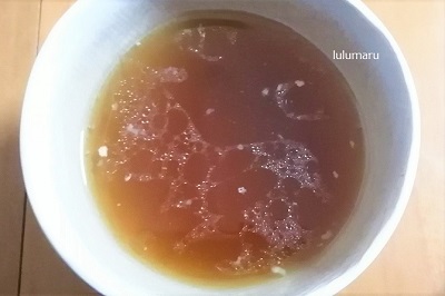 ② スープを300~360mlのお湯で溶かし混ぜておく。