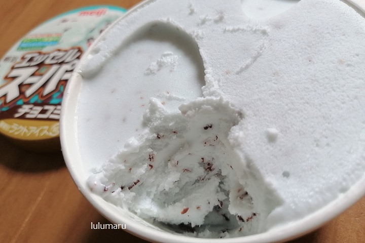 まあ、私好みにしてもらうのであれば、もう少しミント強めでチョコ大きめでパリっと食感がほしいところですが、100円ほどの価格で200mlも入っているので、今のままでも十分ありがたいなと思えます。