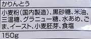 T小麦粉(国内製造)、黒砂糖、米油、三温糖、グラニュー糖、水飴、ごま、イースト、小麦胚芽、食塩