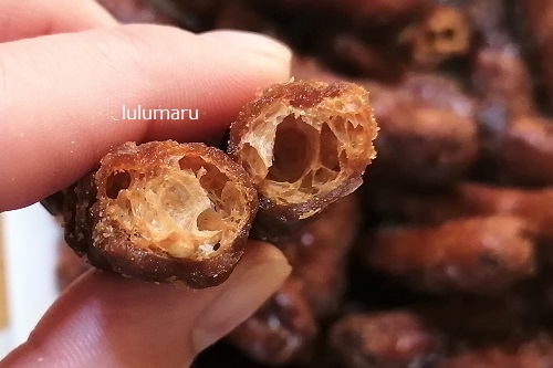 袋を開けると、ドーナツのような甘い揚げ物の香りがします。