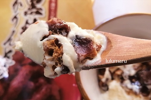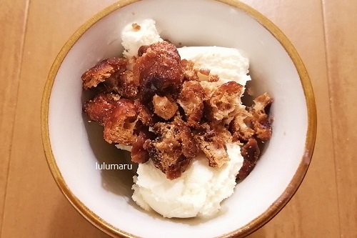 かりんとうを食べているときに、これアイスに入れて食べたら美味しそう!と思い立って、家にあったMOWのバニラアイスに入れて食べてみました。