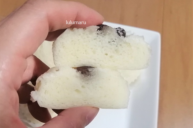 少しねちっとした歯にくっつきやすい系の蒸しパンだなと思いました。