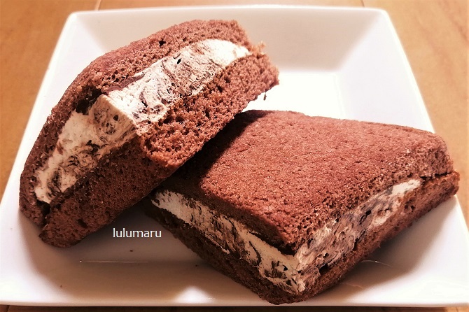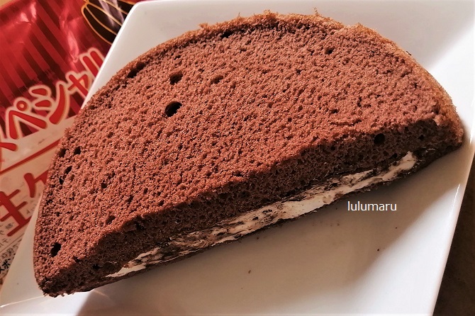 ふんわりしっとりとした ほんのり甘いココア生地に、クリームがたっぷり入っています。
