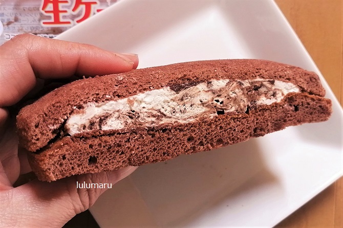 そして、まだらに生チョコクリームが入っているのが良くて、一口食べるごとに「ほとんどホイップだけのところ」「チョコ感あるところ」「チョコ感たっぷりでほろ苦くてねっとりしたところ」といろんな味わいが楽しめました。