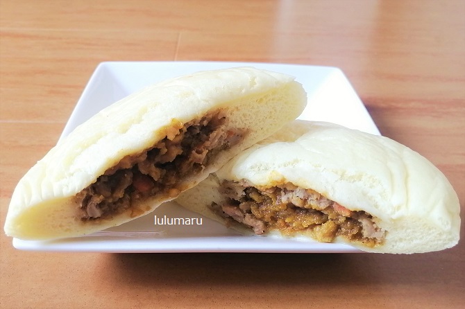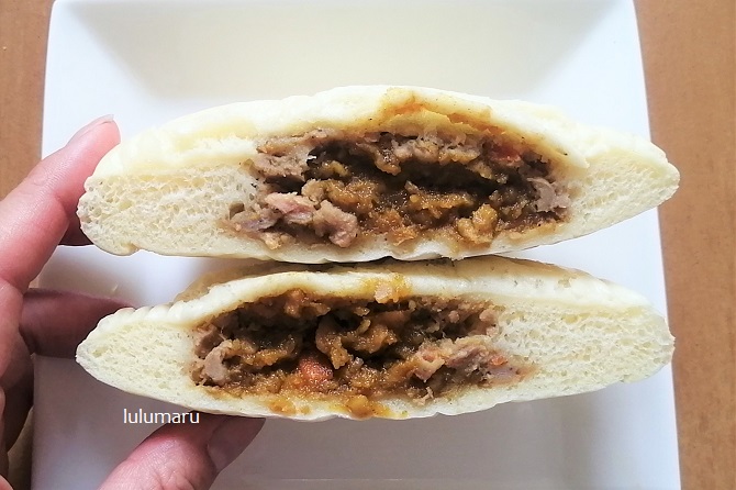 肉まんみたいな蒸しぱん生地でふかふかもちもちでした。