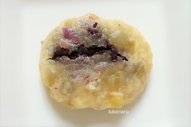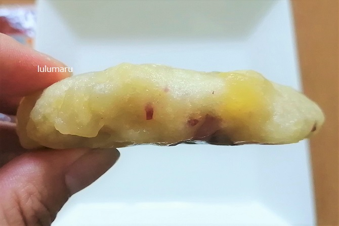 少しねちっと、少しもちっとした生地に角切りのおいもが入っていて、中にはあんこがけっこうたっぷり入っていました。