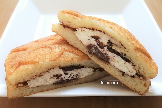 ソフトワッフルのような生地にクリームやチョコが挟まっています。