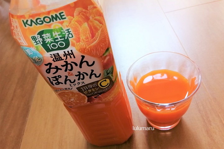 そんなわけで今回は、カゴメ【野菜生活100 温州みかん&ぽんかんミックス】を飲んだ感想・口コミレビューを、私・るるまる(40代女性)がしていきたいと思います。