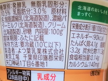 原材料は、「脱脂濃縮乳(北海道製造)」「濃縮バターミルク(北海道製造)」「クリーム(北海道製造)」「砂糖」の4種類のみ、とシンプル。
