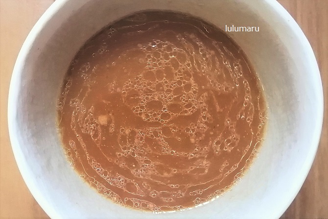 ② 粉末スープと液体スープをどんぶりに入れておく。